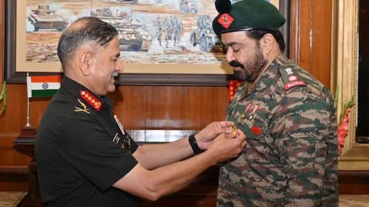 ടെറിട്ടോറിയൽ ആർമിയിൽ 16 വർഷം പൂർത്തിയാക്കിയതിന്റെയും,രാജ്യത്തിന്റെ പരമോന്നത ചലച്ചിത്ര പുരസ്കാരമായ ദാദാ സാഹേബ് ഫാൽക്കെ അവാർഡ് നേടിയതിന്റെയും പശ്ചാത്തലത്തിൽ നടൻ മോഹൻലാലിന് കരസേനയുടെ പ്രത്യേക ആദരം. കരസേനാ മേധാവി ജനറൽ ഉപേന്ദ്ര ദ്വിവേദിയുമായി മോഹൻലാൽ കൂടിക്കാഴ്ച നടത്തുകയും, അദ്ദേഹത്തിൽ നിന്ന് അഭിനന്ദനം ഏറ്റുവാങ്ങുകയും ചെയ്തു. “ഇതൊരു വലിയ അംഗീകാരവും ബഹുമതിയുമാണ്,” കരസേനയുടെ ആദരം ഏറ്റുവാങ്ങിയ ശേഷം അദ്ദേഹം പ്രതികരിച്ചു. രാജ്യത്തിന് നൽകിയ സംഭാവനകളും സൈന്യവുമായുള്ള അദ്ദേഹത്തിന്റെ ഊഷ്മള ബന്ധവുമാണ് ഈ ബഹുമതിക്ക് അദ്ദേഹത്തെ അർഹനാക്കിയത്.