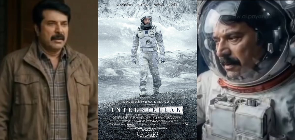 വ്യത്യസ്തമായ കഥപറച്ചിലിലൂടെയും സംവിധാന മികവിലൂടെയും ലോകസിനിമാപ്രേമികളെ കൈയിലെടുത്ത സംവിധായകനാണ് ക്രിസ്റ്റഫർ നോളൻ. ഓരോ നോളൻ സിനിമയ്ക്കും വലിയ ആരാധകരാണുള്ളത്. ഏറെ പ്രേക്ഷകപ്രശംസ നേടിയ ക്രിസ്റ്റഫർ നോളൻ ചിത്രമായിരുന്നു ‘ഇന്റർസ്റ്റെല്ലാർ’. 2014ല് ഒരു സയൻസ് ഫിക്ഷൻ ഡ്രാമയായി ഒരുങ്ങിയ സിനിമയ്ക്ക് ഇന്നും ഏറെ സ്വീകാര്യതയുണ്ട്. ഇന്റർസ്റ്റെല്ലാറിൽ മമ്മൂട്ടി നായകനായി എത്തിയാൽ എങ്ങനെയുണ്ടാകും?. ഇപ്പോഴിതാ അത്തരത്തിൽ ഒരു വീഡിയോ ആണ് സോഷ്യൽ മീഡിയയിൽ വൈറലാകുന്നത്.