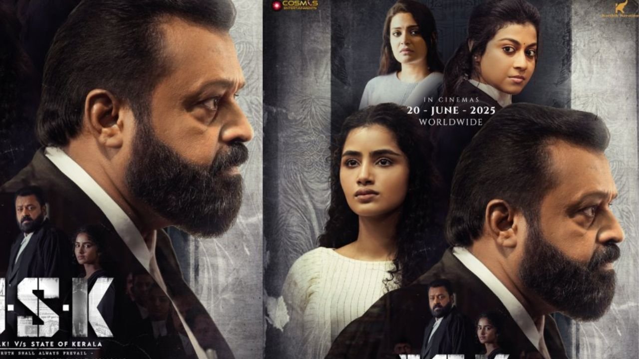 സുരേഷ് ഗോപിയെ നായകനാക്കി പ്രവീൺ നാരായണൻ സംവിധാനം ചെയ്യുന്ന ‘ജെ എസ് കെ- ജാനകി vs സ്റ്റേറ്റ് ഓഫ് കേരള’ എന്ന ചിത്രത്തിന്റെ ഒഫീഷ്യൽ മോഷൻ പോസ്റ്റർ പുറത്ത്. സുരേഷ് ഗോപിയുടെ ശക്തമായ ഡയലോഗ് ഡെലിവറിയിലൂടെ അതിശക്തമായ ഒരു പ്രമേയം കൈകാര്യം ചെയ്യുന്ന ഒരു കോർട്ട് റൂം ത്രില്ലർ ആയിരിക്കും ചിത്രമെന്ന സൂചനയും മോഷൻ പോസ്റ്റർ തരുന്നുണ്ട്. അനുപമ പരമേശ്വരൻ, ദിവ്യ പിള്ള, ശ്രുതി രാമചന്ദ്രൻ എന്നിവരാണ് ചിത്രത്തിലെ നായികാ കഥാപാത്രങ്ങൾ അവതരിപ്പിക്കുന്നത്. സുരേഷ് ഗോപിയും മൂന്ന് നായിക കഥാപാത്രങ്ങളും പോസ്റ്ററിൻ്റെ ഭാഗമാണ്. ജൂൺ 20 ന് ചിത്രം ആഗോള റിലീസായി തിയേറ്ററുകളായിലെത്തും.